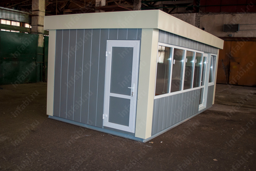 Киоск оснащен плоской односкатной крышей и открывающимся форточным окном, что обеспечивает удобство и функциональность при эксплуатации. Он также имеет прочную и долговечную конструкцию, которая может выдерживать различные погодные условия.