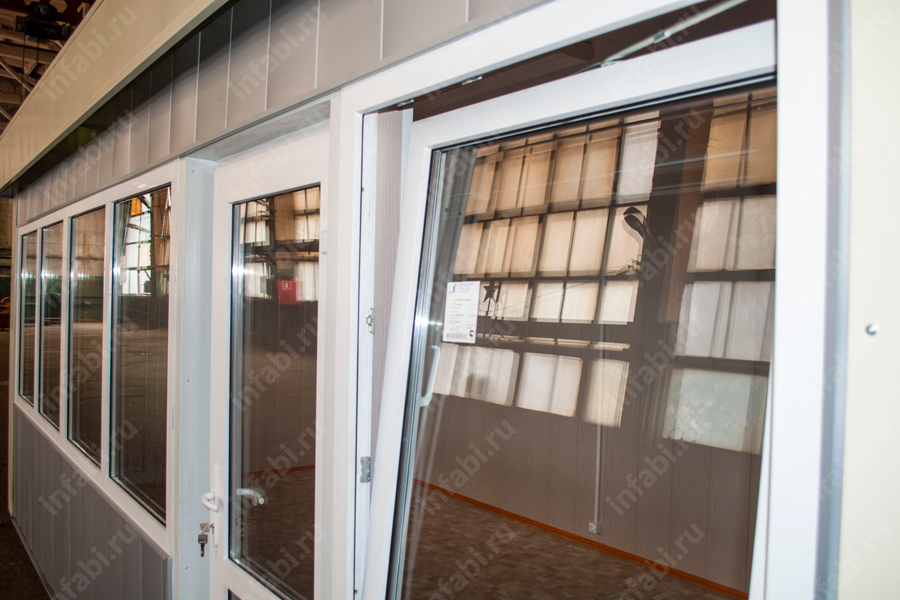 | Окна | Однокамерный глухой стеклопакет толщиной 32мм в ПВХ раме белого цвета (или с ламинацией по каталогу Renolit) Окно с форточкой для выдачи |