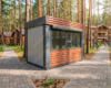 | Внешняя отделка | Вертикальные гладкие панели шириной 240 мм из оцинкованного листа с полимерным покрытием (цвет на выбор по каталогу RAL), отделка внешних передних углов фасадными кассетами (цвет по каталогу RAL) На фасаде в нижней части отделка декоративными рейками из дерева |
