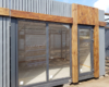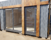 Окна и дверь изготавливаются высокими. Благодаря такой высоте окон на фронтальной части павильона остекление получается сплошным и создает большую обзорность. Располагаются на фасадной части павильона. Могут быть как с ламинацией, так и без нее.