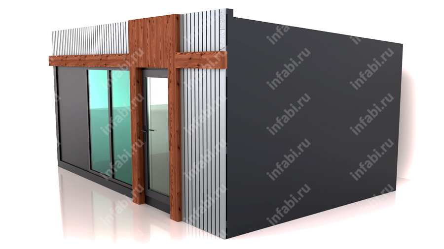 Комплектация павильона включает прокладку электропроводки, установку осветительных приборов, розеток и электрического щитка. Внешняя отделка выполнена из гладких металлических панелей с полимерным покрытием в различных цветовых решениях по каталогу RAL.