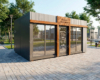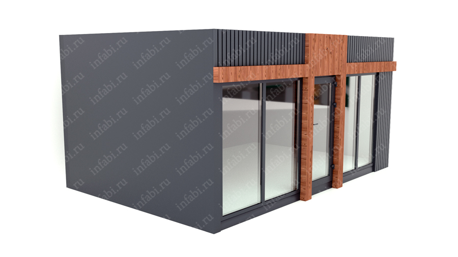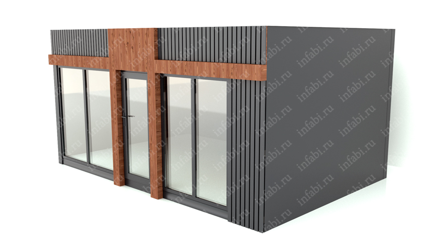 Модульный павильон «Бытовая техника» 6х4 м — торговый павильон со стильной и приятной внутренней и внешней отделкой и современным декором. Сочетание темных цветов внешней отделки с декоративными деревянными элементами также темных тонов выделяют торговый павильон такого типа в городской среде, что позволяет привлечь покупателей в торговую точку и сделать ее более представительной.