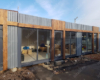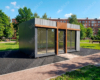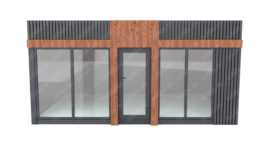 Окна и дверь изготавливаются высокими. Благодаря такой высоте окон на фронтальной части павильона остекление получается сплошным и создает большую обзорность. Располагаются на фасадной части павильона. Могут быть как с ламинацией, так и без нее.
