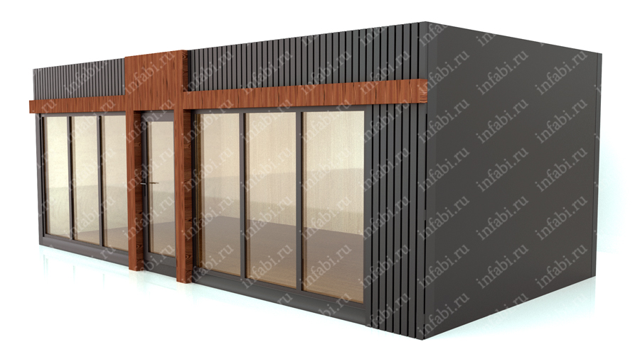 Модульный павильон «Бытовая техника» — торговый павильон со стильной и приятной внутренней и внешней отделкой и современным декором. Сочетание темных цветов внешней отделки с декоративными деревянными элементами также темных тонов выделяют торговый павильон такого типа в городской среде, что позволяет привлечь покупателей в торговую точку и сделать ее более представительной.