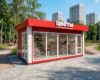 Фотографии модульного торгового павильона «Красный» с выносным фризом.