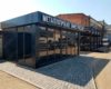 Фотографии модульного торгового павильона «Металлопрокат» с выносным фризом.