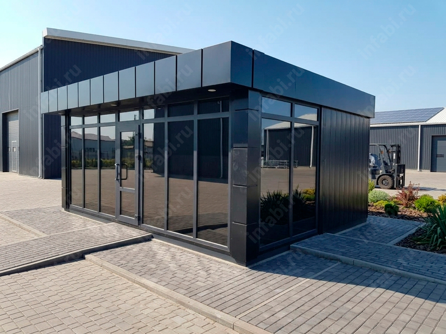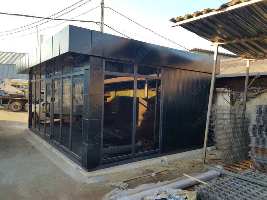 Модульный павильон “Металлопрокат” — это удобное и современное решение для организации небольшого офиса продаж на открытом воздухе. Он представляет собой быстровозводимую конструкцию, состоящую из 2 модулей, которые легко соединяются между собой.