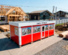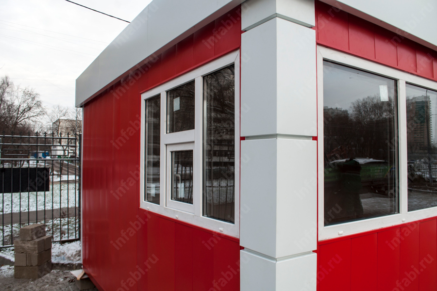 Модульный павильон «Офис продаж-3» изготовлен с большими витринными окнами и двухстворчатой дверью ПВХ. Может использоваться для реализации самой различной продукции, например для выпечки. Размер павильона 6х4 метра.