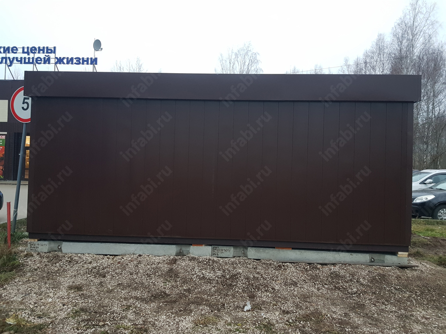 | Внешняя отделка | Вертикальные гладкие панели шириной 240 мм из оцинкованного листа с полимерным покрытием (цвет на выбор по каталогу RAL), отделка внешних углов (цвет по каталогу RAL) |