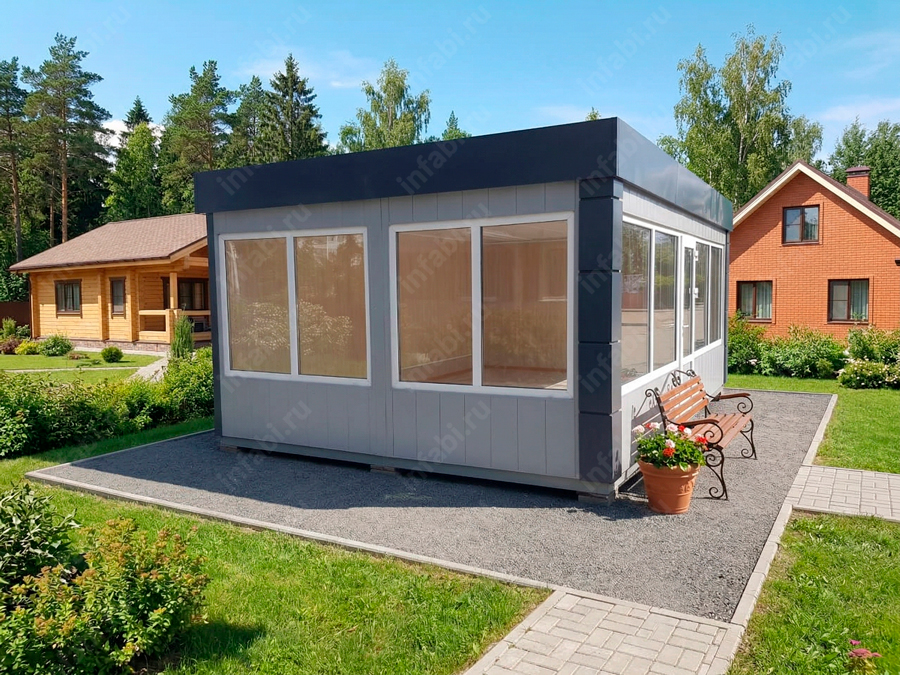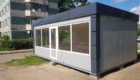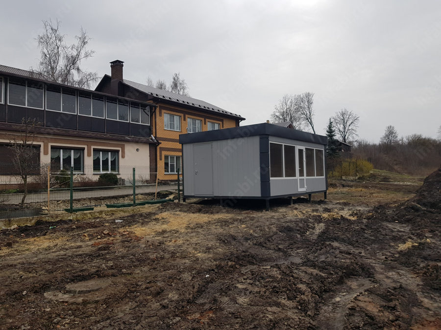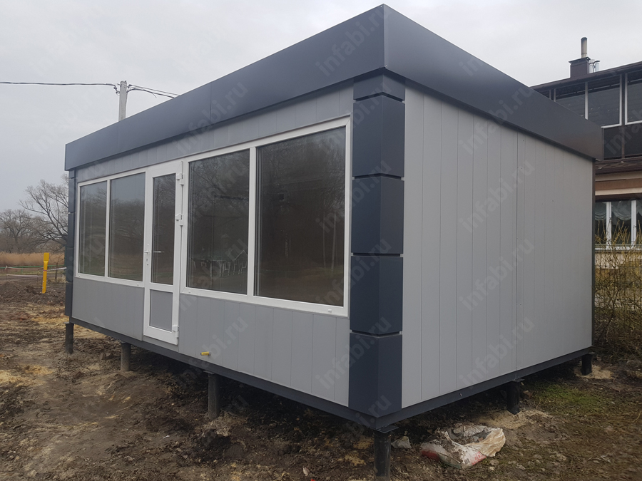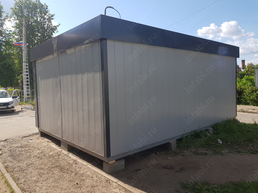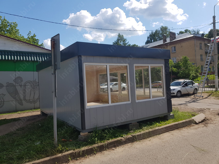 Модульный павильон «Продукты» изготовлен с большими витринными окнами и двухстворчатой дверью ПВХ. Может использоваться для реализации самой различной продукции, например для выпечки. Размер павильона 6х4 метра.