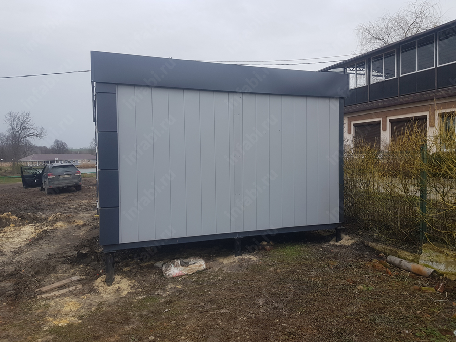 | Внешняя отделка | Вертикальные гладкие панели шириной 240 мм из оцинкованного листа с полимерным покрытием (цвет на выбор по каталогу RAL), отделка внешних углов (цвет по каталогу RAL) |