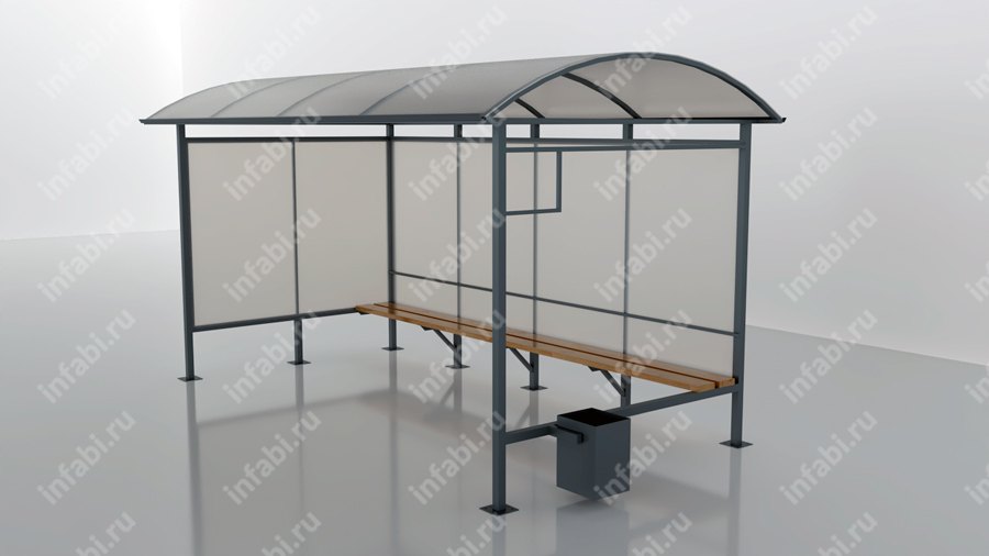 Чтобы заказать остановочный павильон ОМ-2 (тип 4) с отделкой сотовым поликарбонатом — отправьте свою заявку по электронной почте нашей компании infabi@mail.ru или номеру телефона +7 (495) 390 96 44.