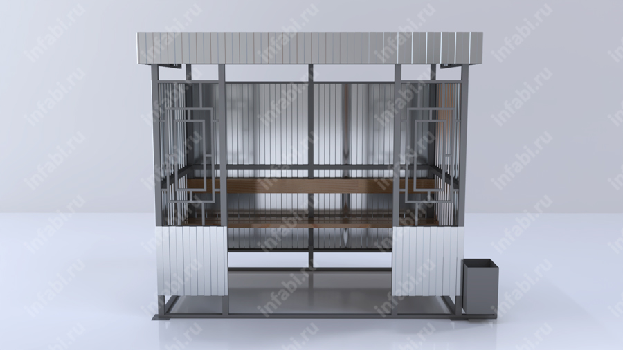 Павильон ОМ-3 может быть дополнительно оснащен скамьей, подсветкой, декоративными панно для обеспечения комфорта и безопасности пассажиров.