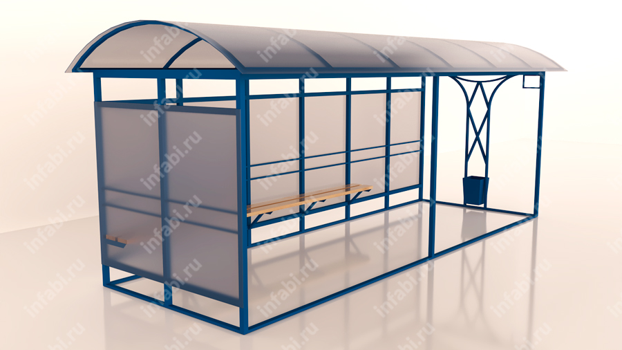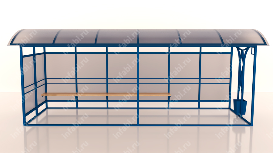 | Каркас | Полностью металлический неразборный и сварной каркас из профильных стальных труб с различным сечением 50х50, 40х25, 20х20. Рамка для расписания. Декоративные элементы с боковой стороны остановки. Покраска в два слоя грунт, эмаль ПФ |