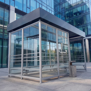Современные павильоны для курения — это не просто зоны для перерывов, а продуманные элементы инфраструктуры бизнес‑центра. В нашей коллекции представлены модели, отвечающие нормам безопасности и комфорта: огнестойкие материалы, защита от осадков и ветра. Эргономичный дизайн гармонично вписывается в архитектуру комплекса, а продуманное освещение создаёт уютную атмосферу в любое время суток. Выбирайте решения, которые заботятся о благополучии сотрудников и гостей, не нарушая общий стиль пространства. Вы можете купить павильоны для курения с различным дизайном и стилем исполнения!