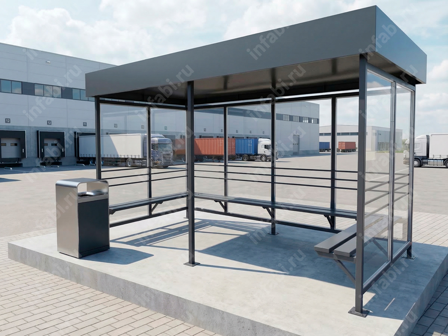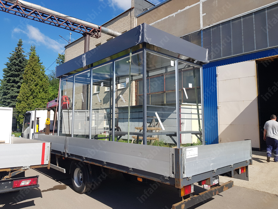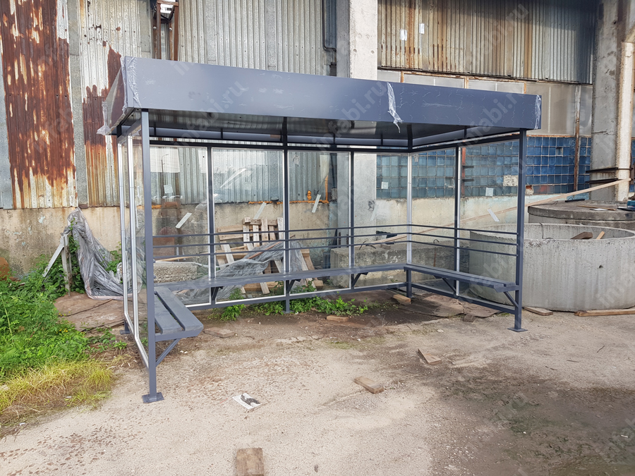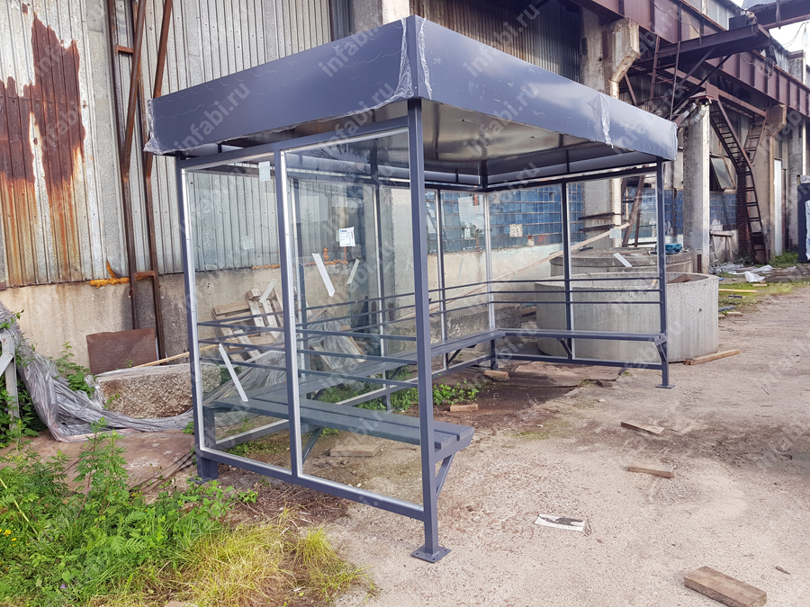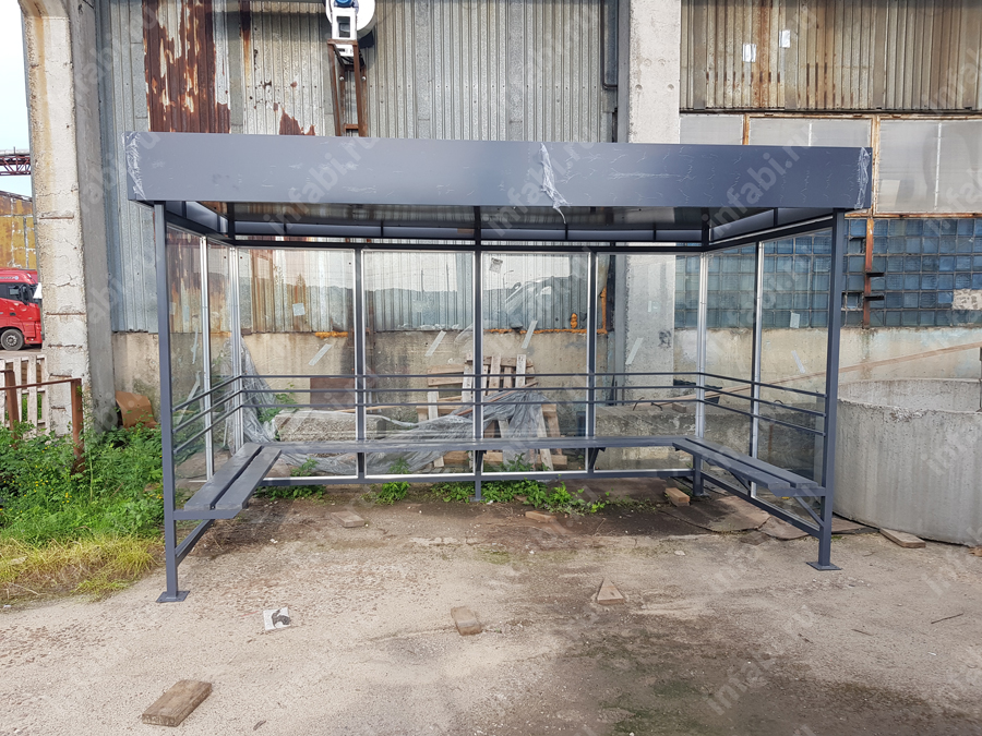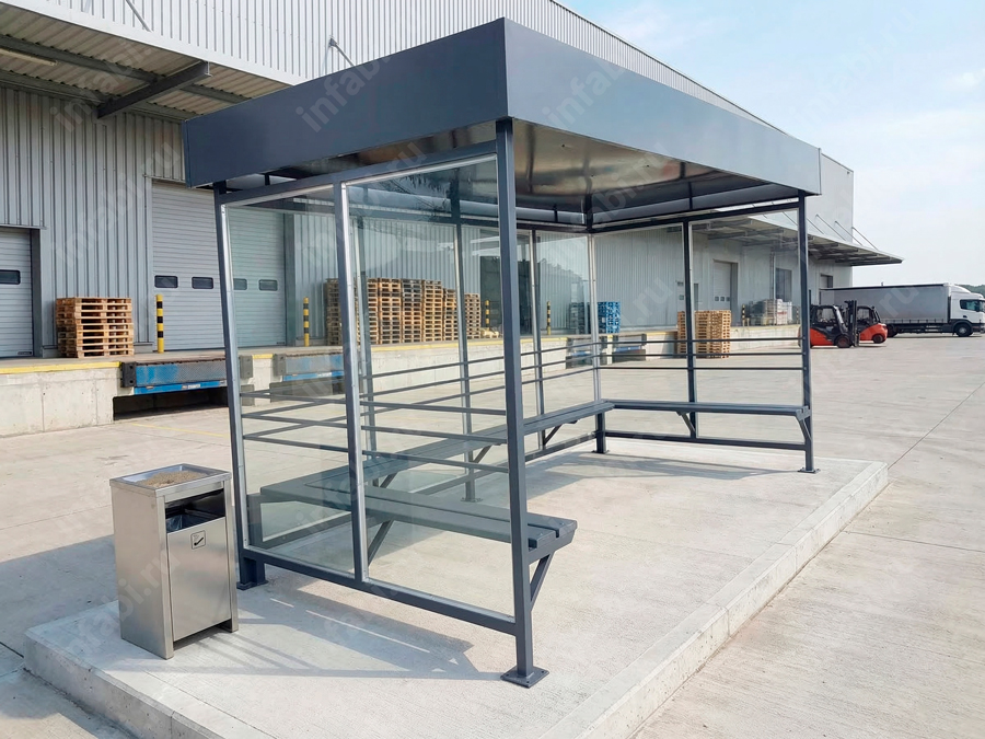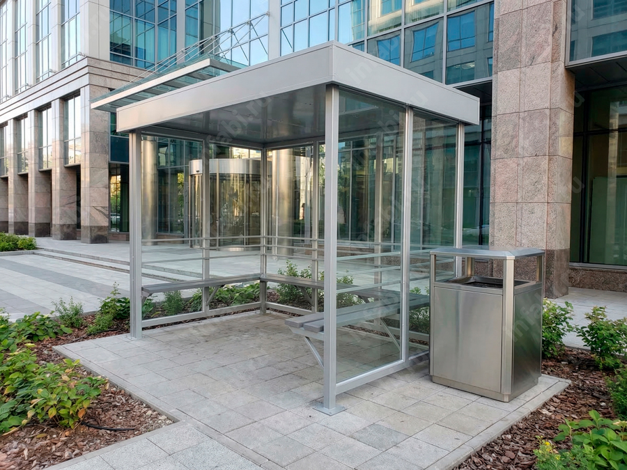 Фотографии павильона для курения КМ-10 (тип 2) с отделкой триплексным стеклом.
