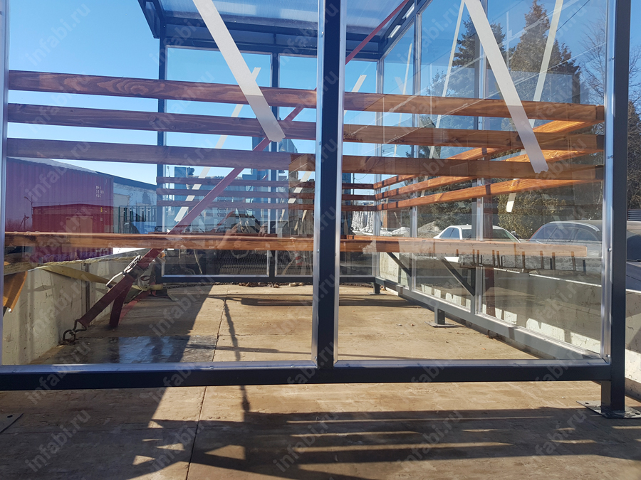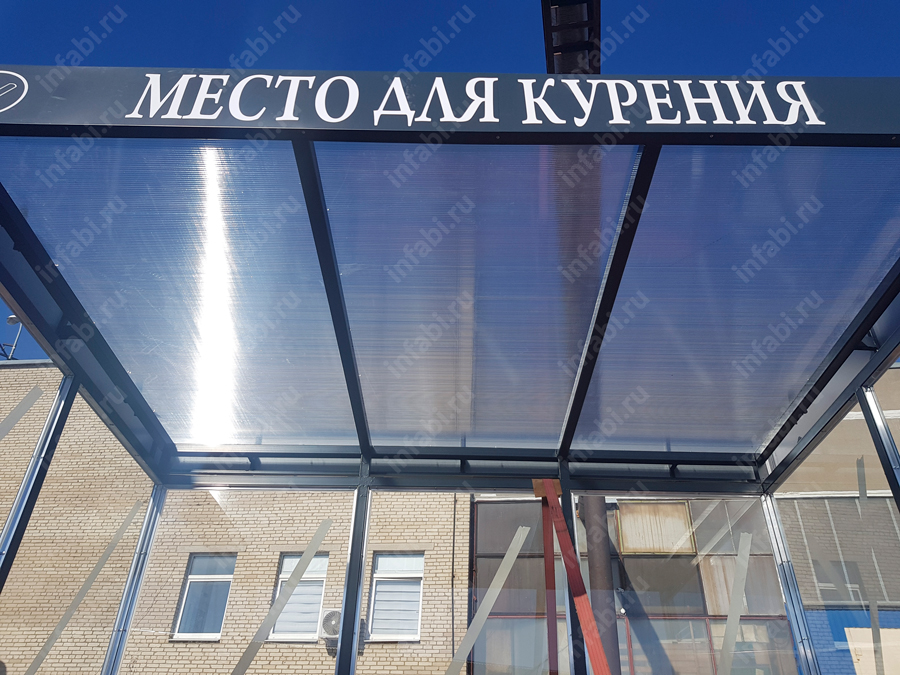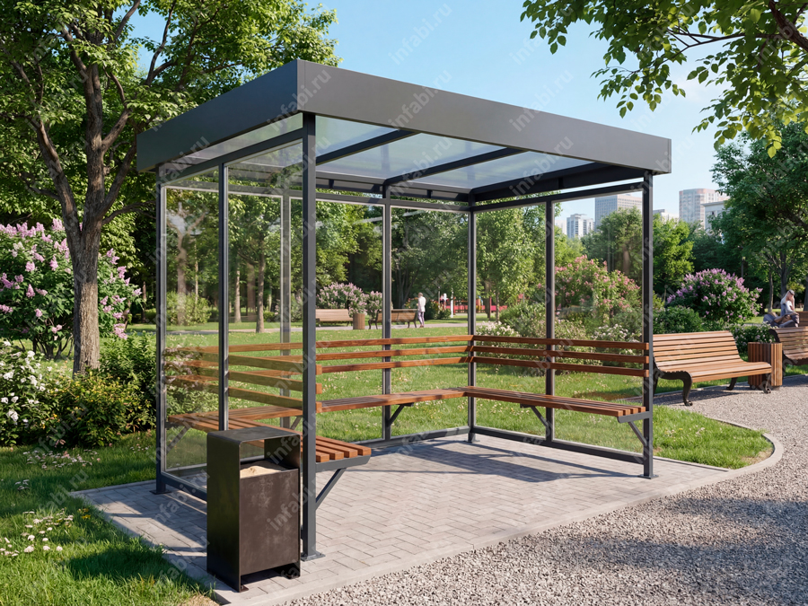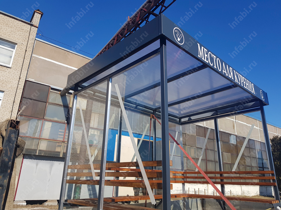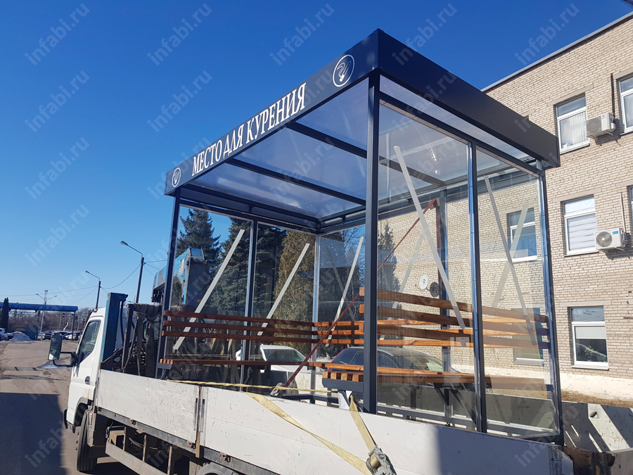 Фотографии павильона для курения КМ-10 (тип 6) с отделкой триплексным стеклом.