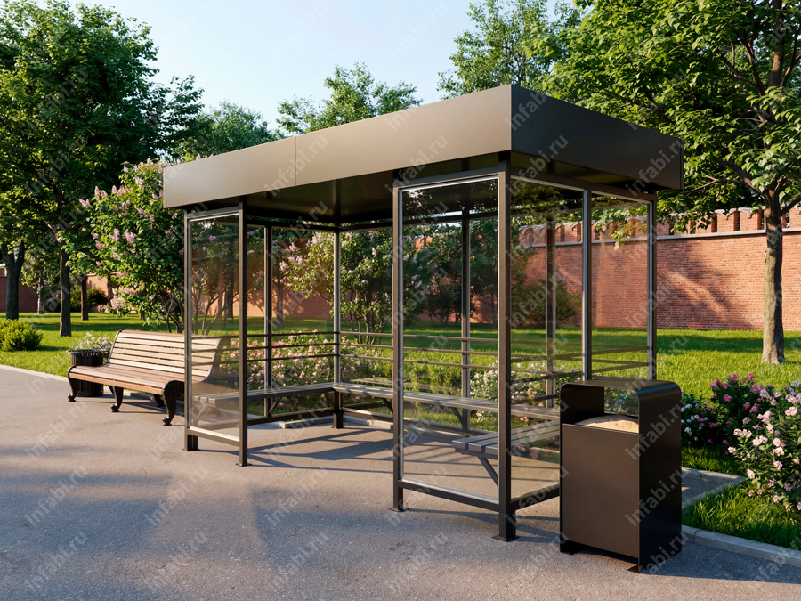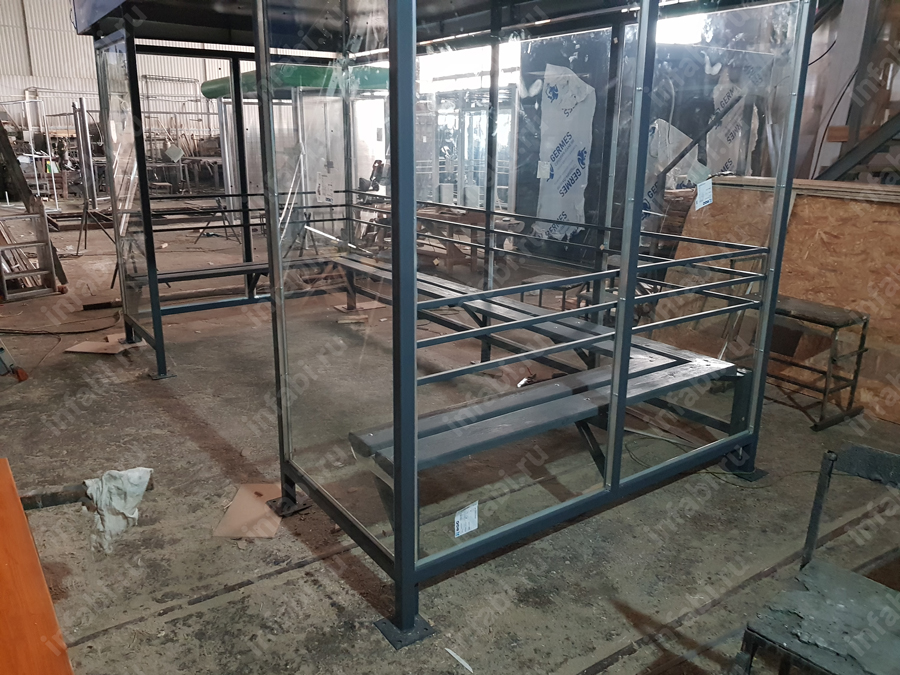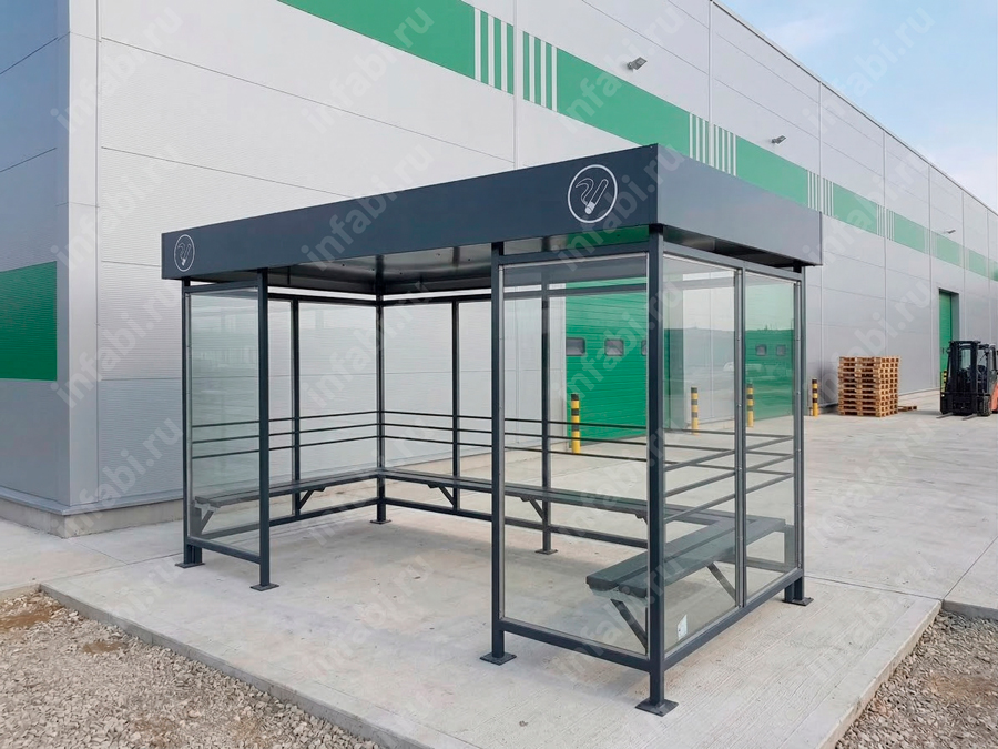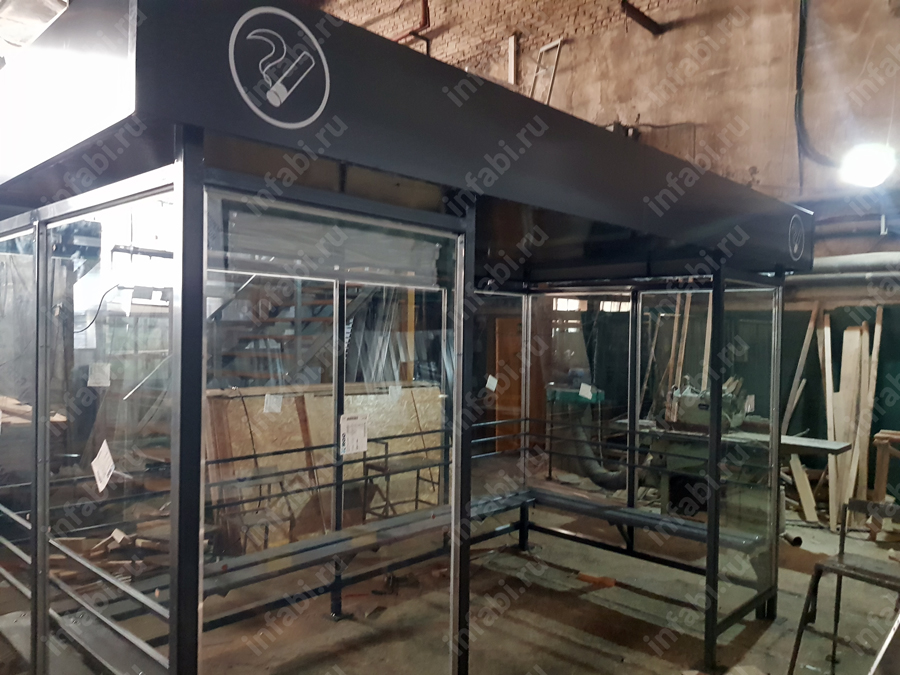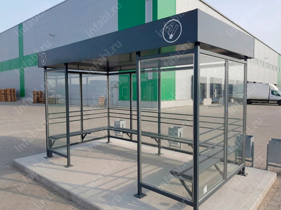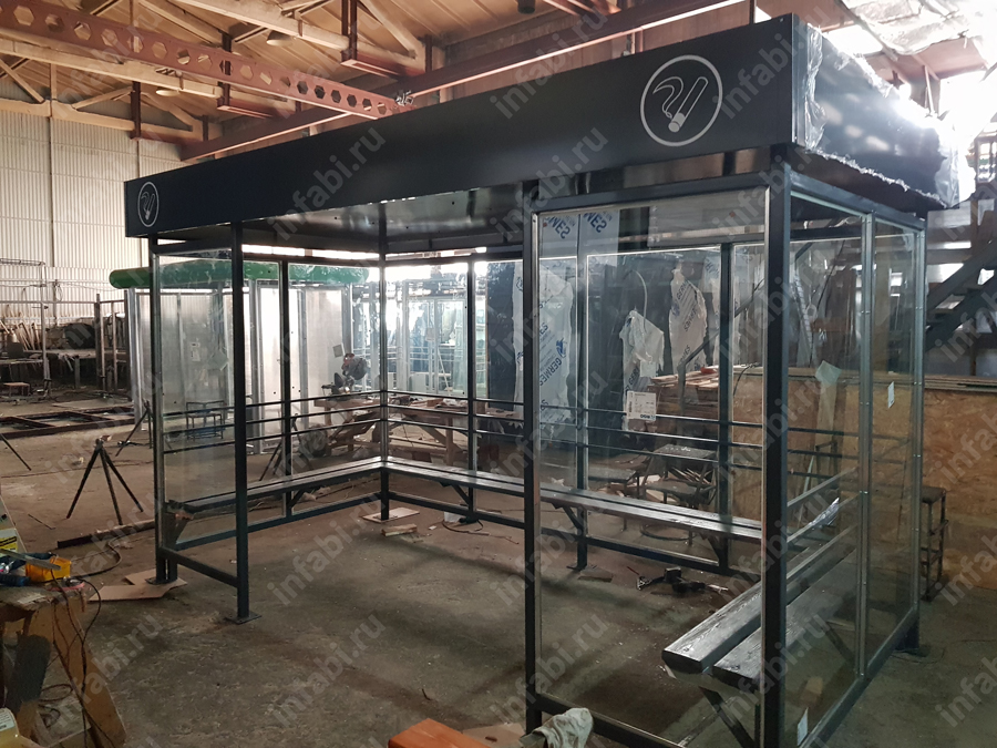 Фотографии павильона для курения КМ-10 (тип 7) с отделкой триплексным стеклом.