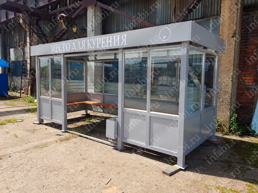 Наша компания является производителем самых различных востребованных моделей павильонов для курения. Ознакомится с реализованными нами проектами павильонов для курения можно здесь>>>