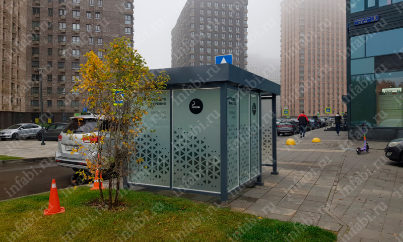 Современный павильон для курильщиков модели КМ-13 выполнен в лаконичном дизайне и оборудован прочной конструкцией из качественных материалов. Павильон оснащен стеклянными поверхностями с информационными наклейками «Место для курения», обеспечивающими комфортное пространство для посетителей и четкое обозначение зоны курения. Компактная конструкция легко интегрируется в любую городскую среду. Подходит для установки возле офисов, торговых центров, медицинских учреждений и иных общественных мест.