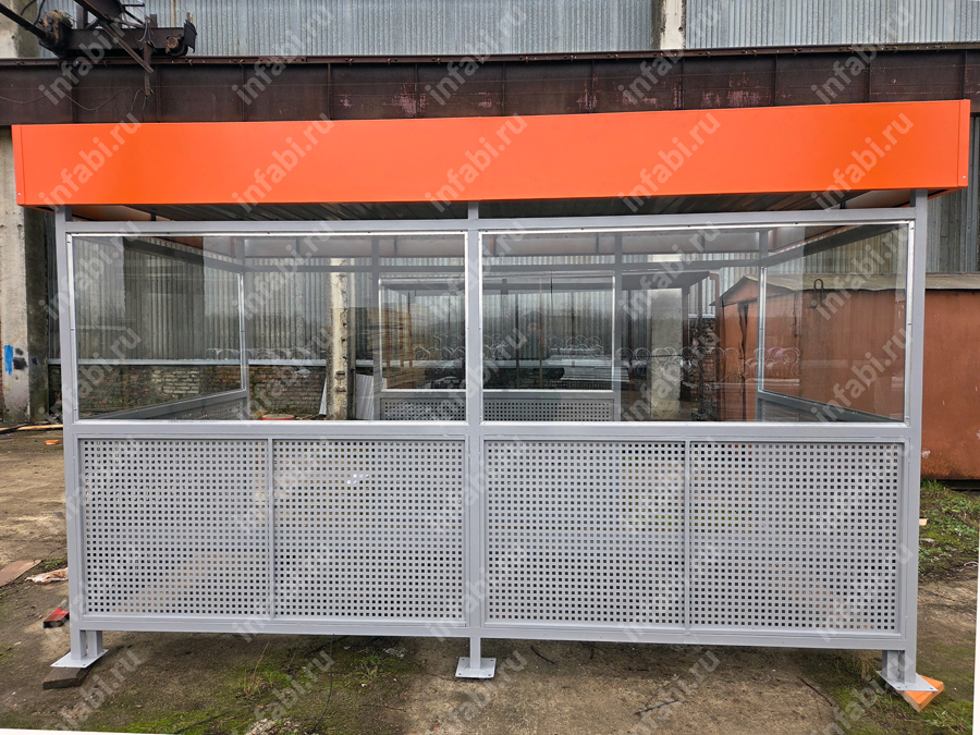 | Стены | Верхняя часть: Стекло триплекс двухслойное толщиной 9 мм (прозрачное) Нижняя часть: гладкий лист в цвет каркаса с перфорацией |