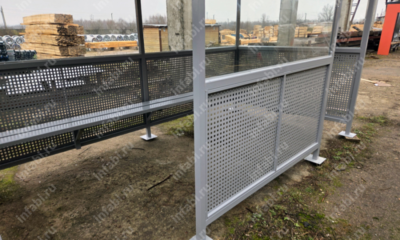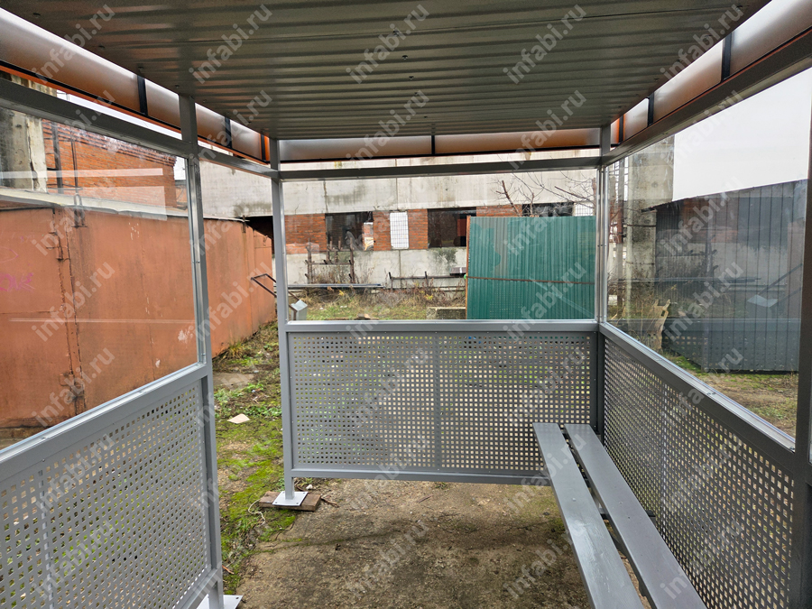 | Крыша | Стальной лист 2 мм, покраска в два слоя — грунтом и эмалью, подшивка потолка павильона — сотовым поликарбонатом или профлистом |