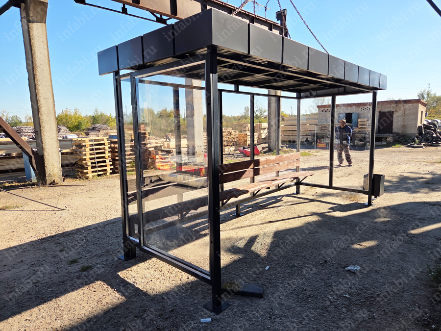 | Крыша | Стальной лист 2 мм, покраска в два слоя — грунтом и эмалью, подшивка потолка павильона — сотовым поликарбонатом или профлистом |