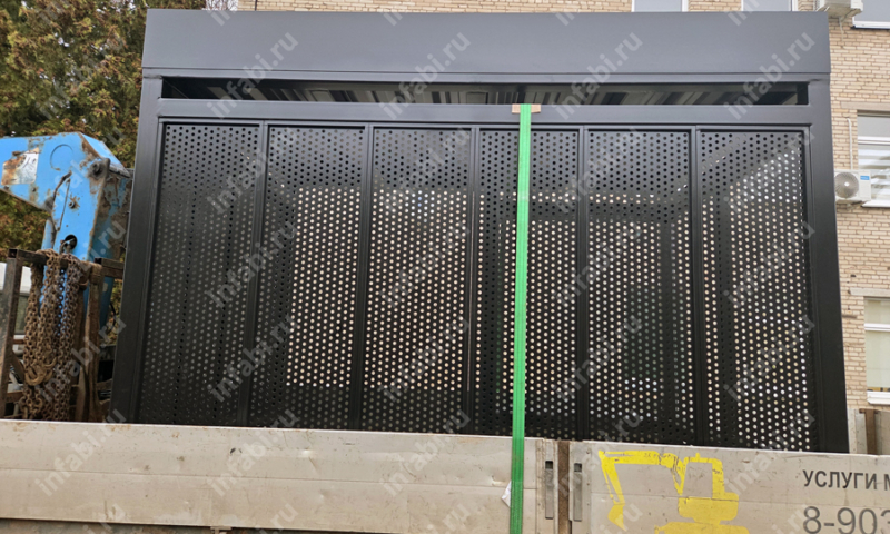 | Фриз декоративный | Располагается по периметру. Материал — стальной лист толщиной 2 мм (в цвет каркаса), высота 300 мм |