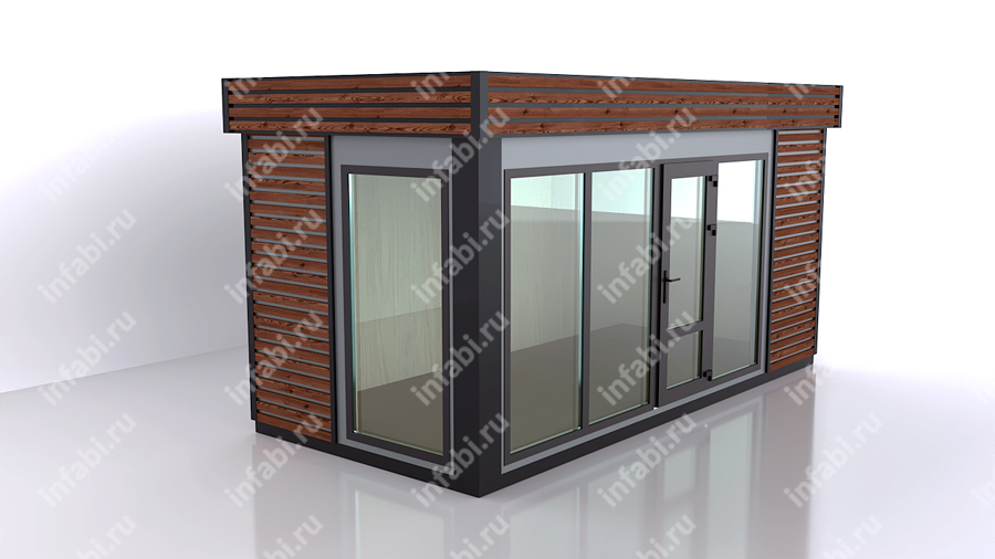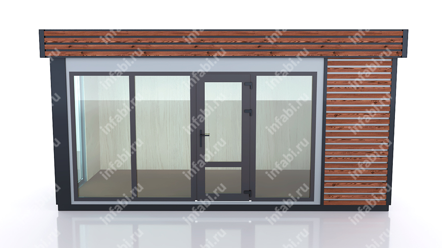 Павильон с декором из дерева ПТ-12 — павильон с компактным и стильным дизайном, выполненный с использованием декора из дерева. Он имеет уютный и приятный внешний вид, который привлечет внимание потенциальных клиентов. Павильон с декором из дерева и высокими окнами – прекрасный вариант для тех, кто хочет красиво и функционально оборудовать свой бизнес.